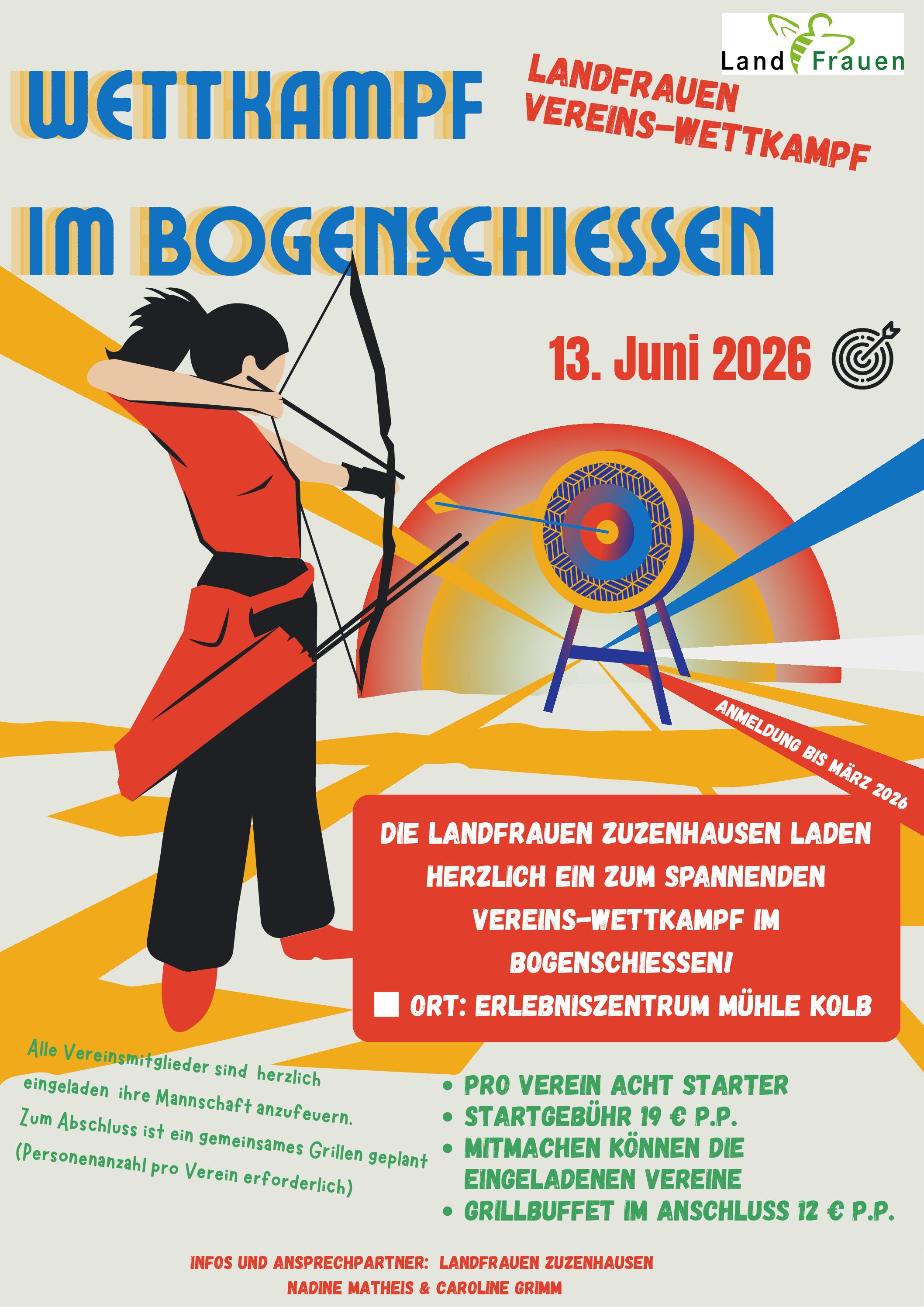 Die Landfrauen Zuzenhausen fordern die Landfrauen von Meckesheim und Mauer am Samstag 13.06.2026 im Bogenschießen heraus.